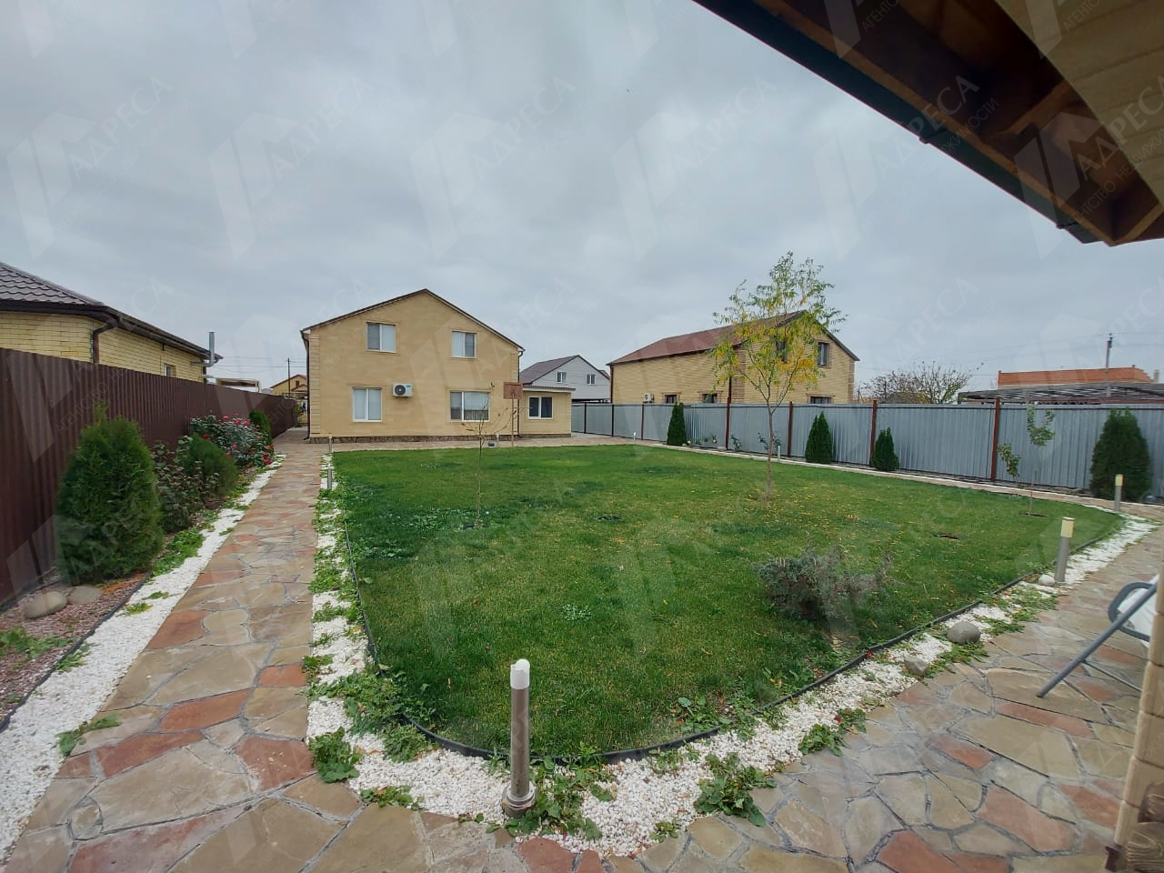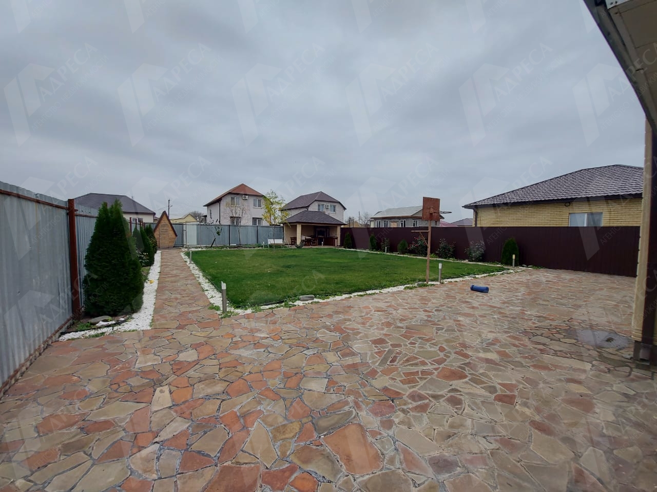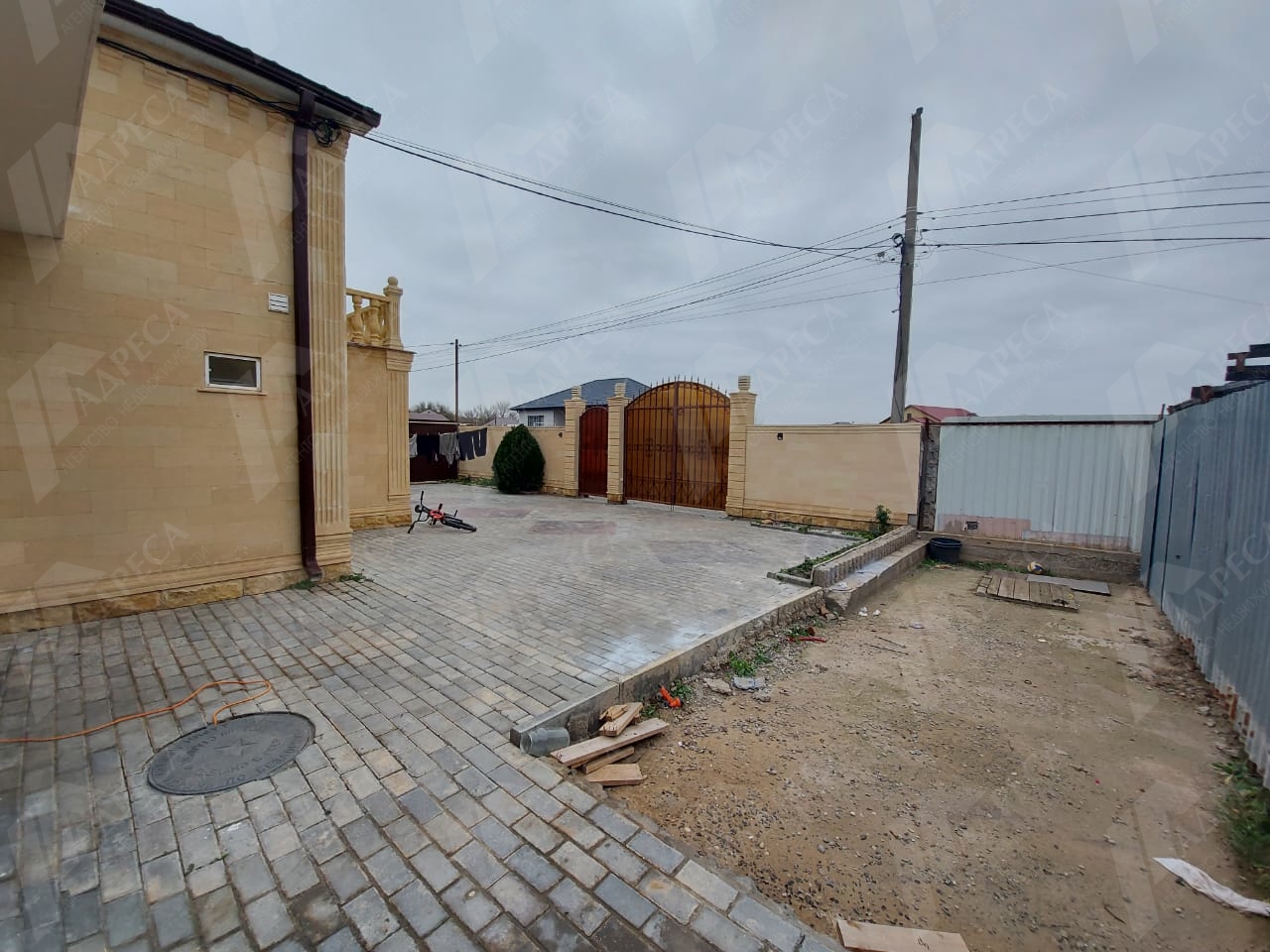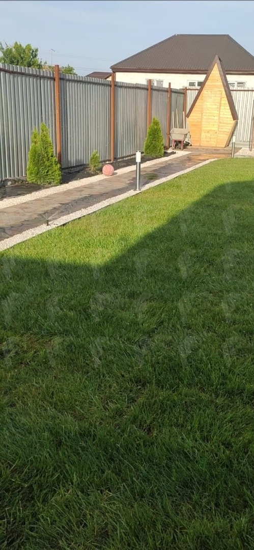 Во дворе имееться гараж пристроенный к дому так же установлена система автоматического полива и освещения.