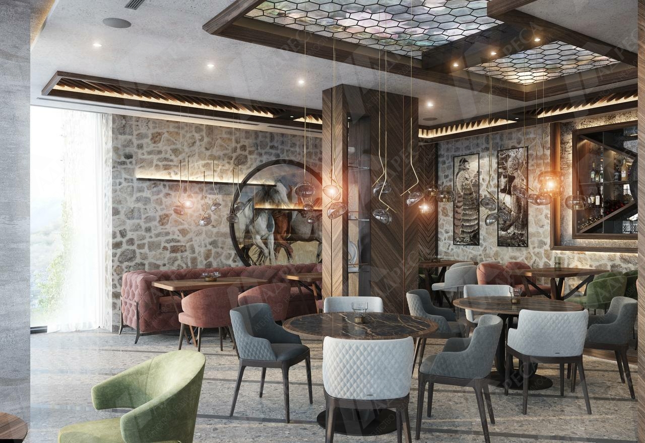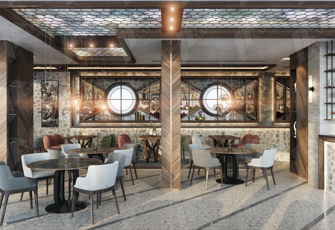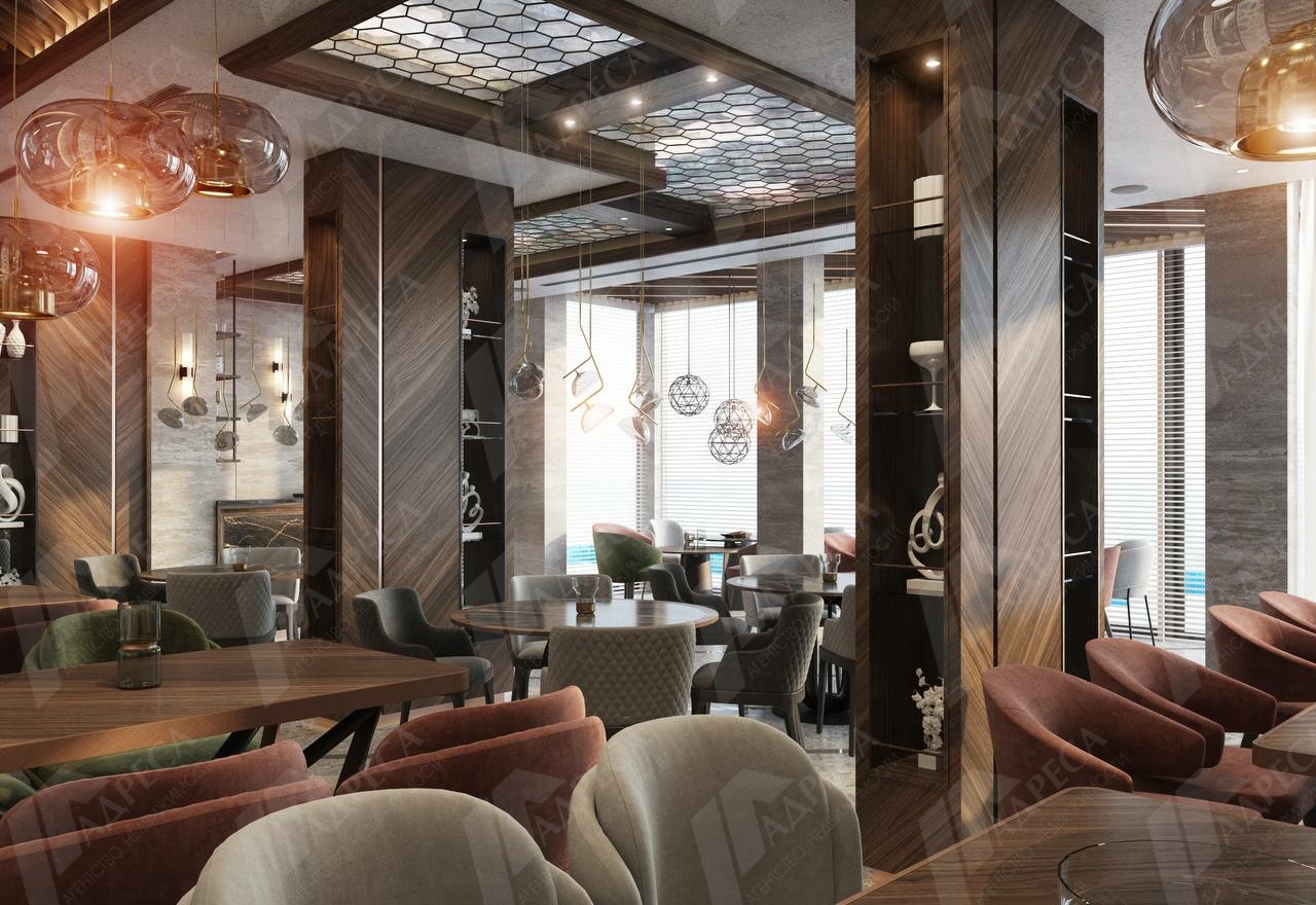 На первом этаже предусмотрен ресторан.