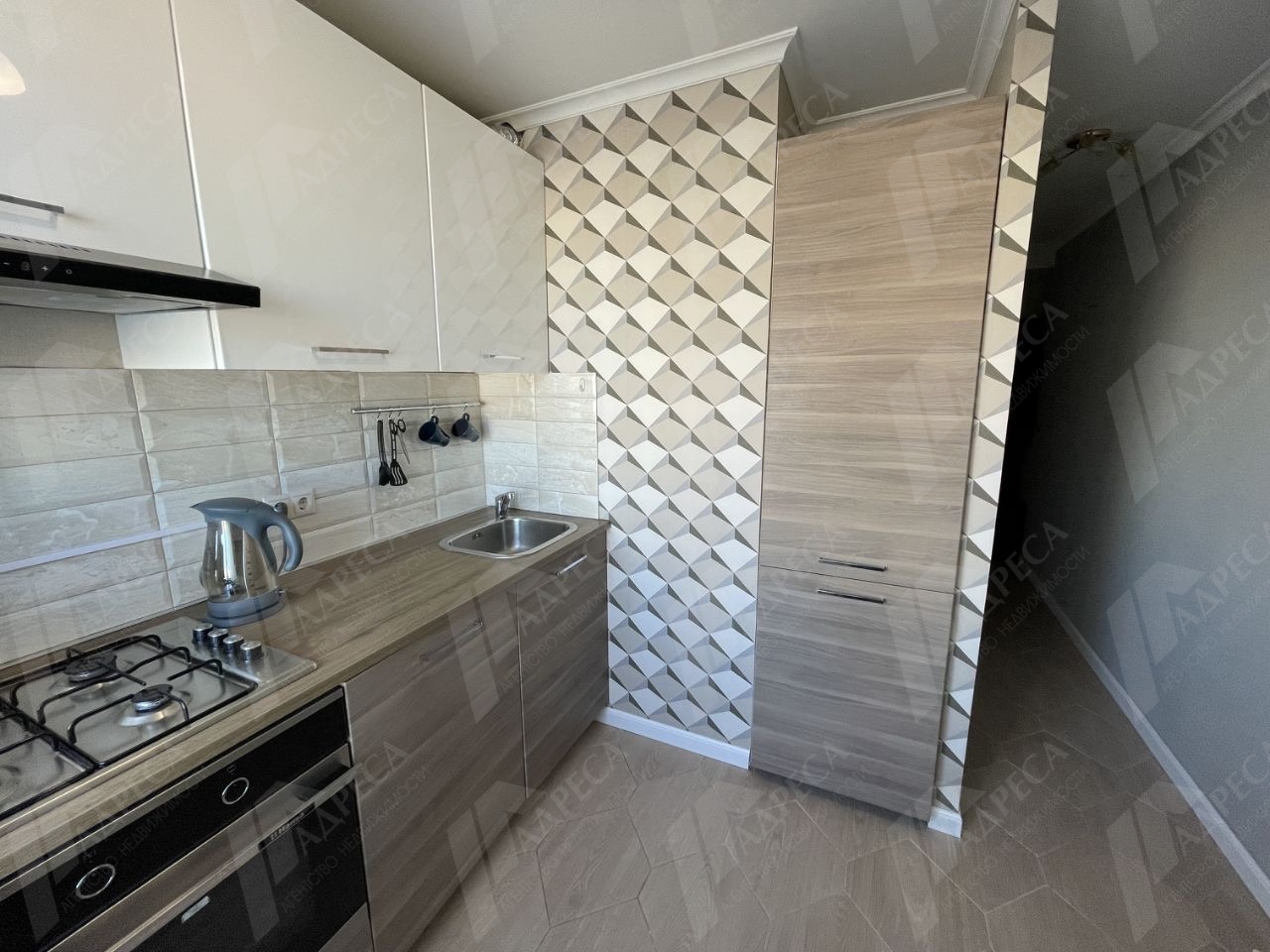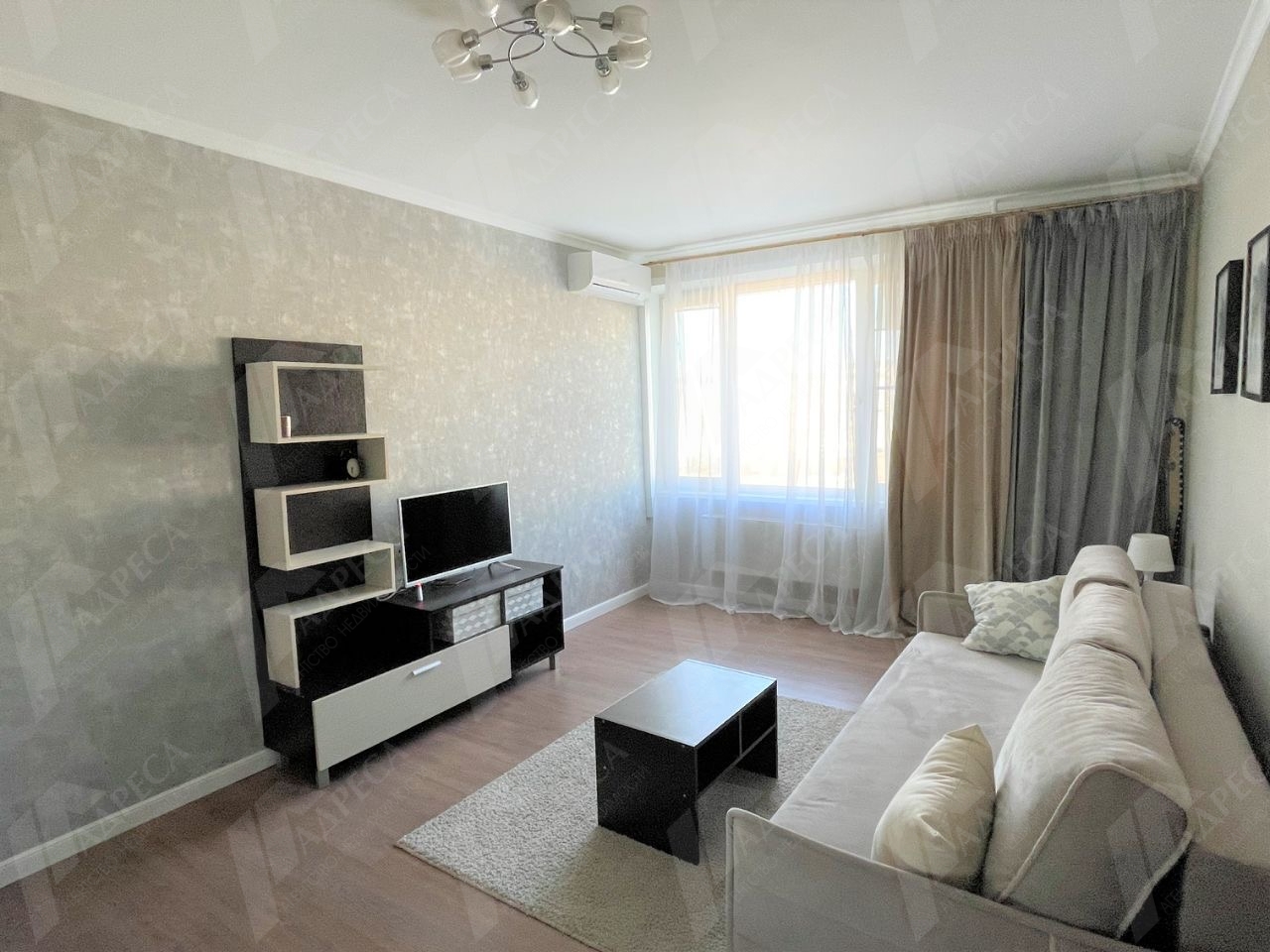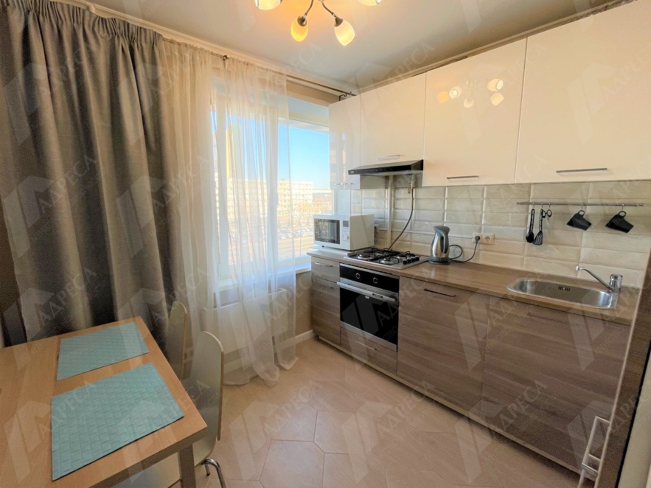 В ней выполнен качественный ремонт, на кухне гарнитур с плитой, микроволновкой, чайником, холодильником. В комнате удобное спальное место, кондиционер, места хранения