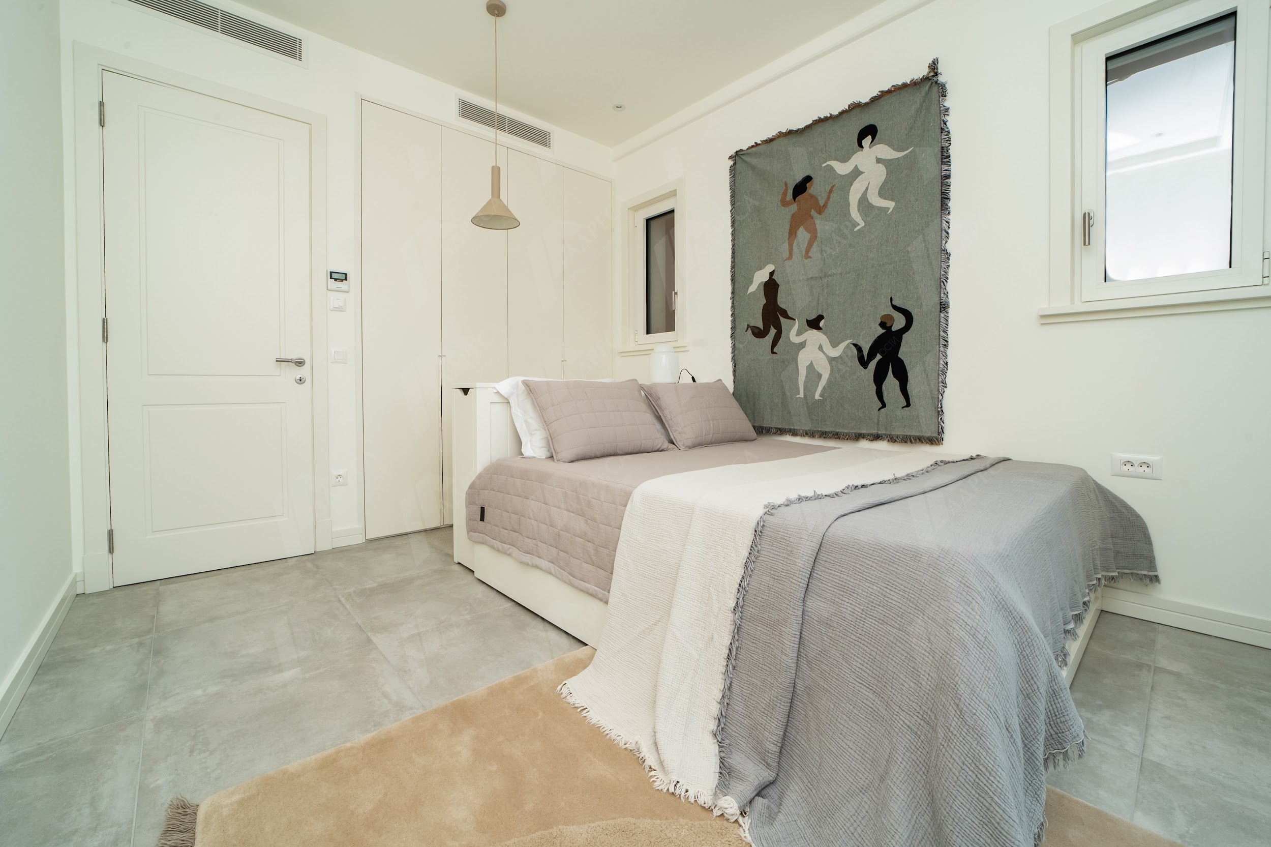 Продуманная планировка включает в себя просторную спальню с большой двойной кроватью, которая позволяет комфортно разместить даже ребенка рядом с родителями.